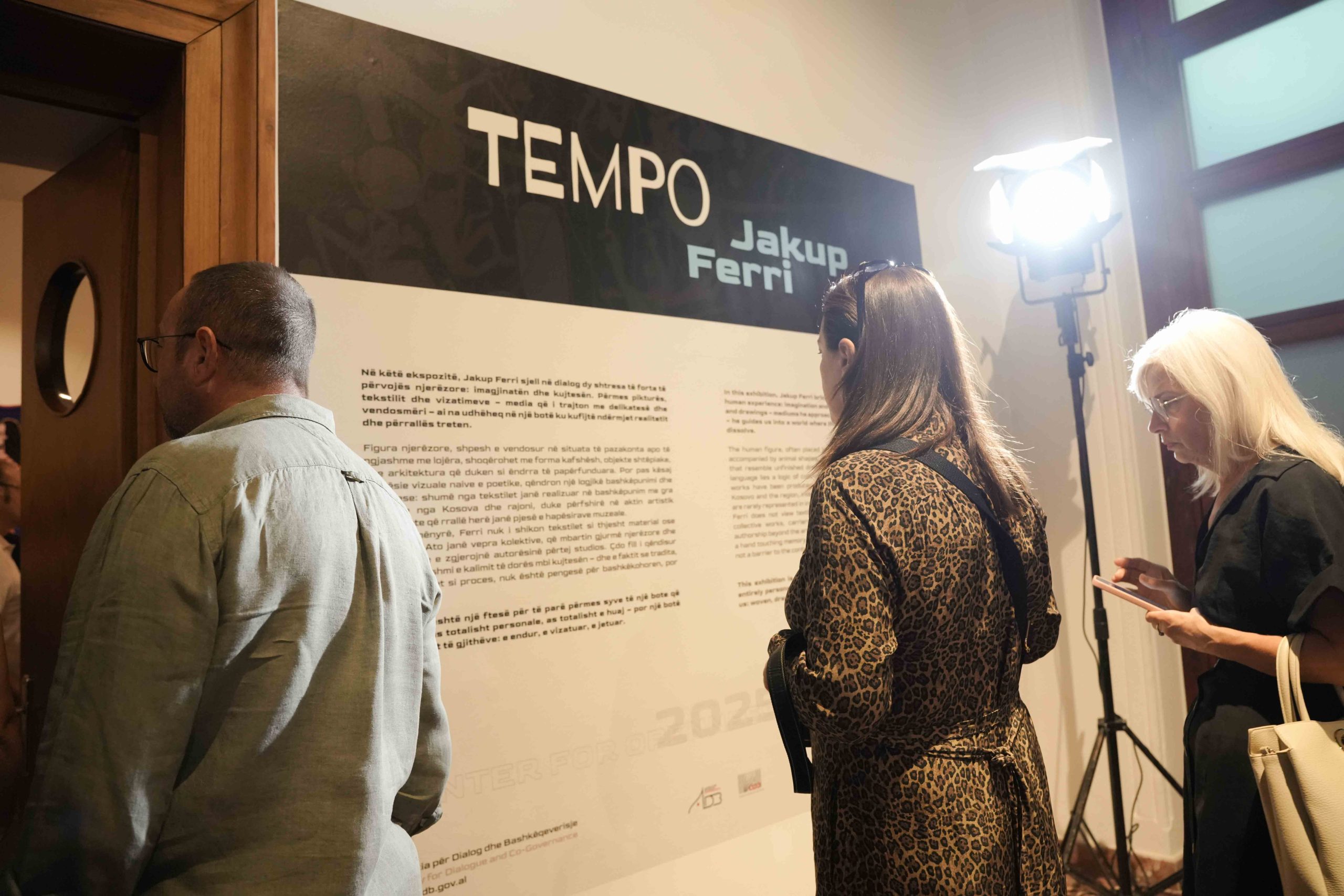 Në këtë ekspozitë, Jakup Ferri sjell në dialog dy shtresa të forta të përvojës njerëzore: imagjinatën dhe kujtesën. Përmes pikturës dhe tekstilit – dy media që i trajton me delikatesë dhe vendosmëri – ai na udhëheq në një botë ku kufijtë ndërmjet realitetit dhe përrallës treten.
