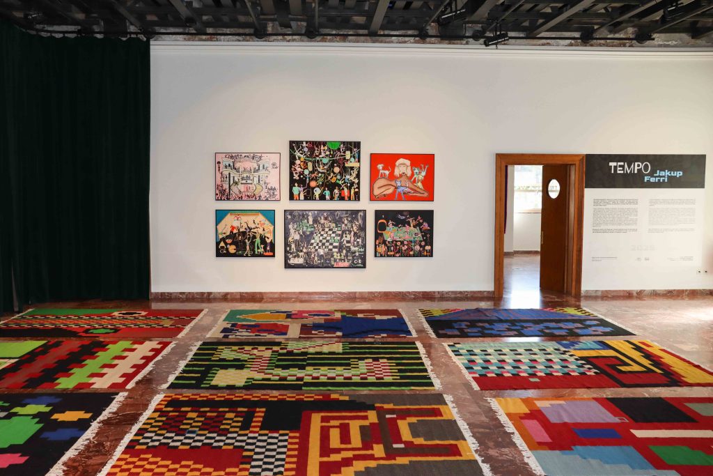 In this exhibition, Jakup Ferri brings into dialogue two deep layers of human experience: imagination and memory. Through painting and textile – two mediums he approaches with both delicacy and resolve – he guides us into a world where the lines between reality and fable dissolve.